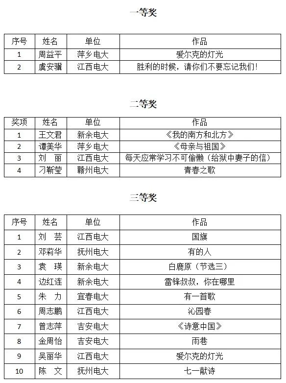 教师组获奖名单: