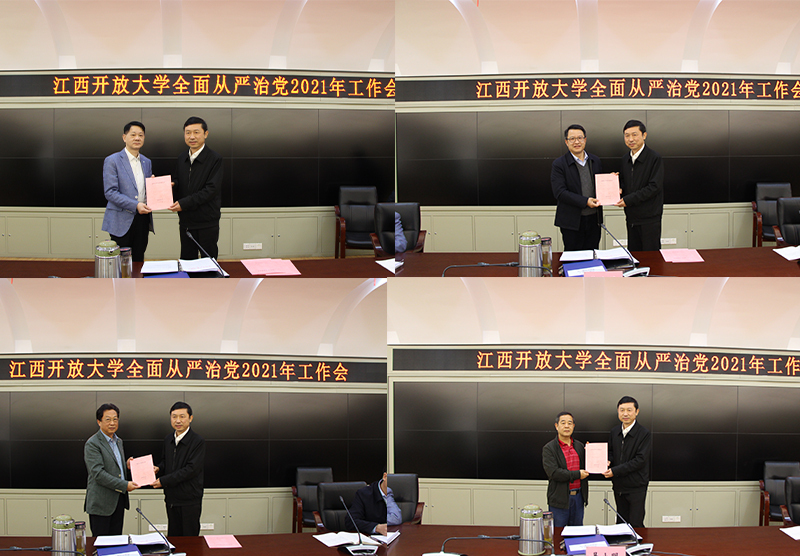 会上,易小明向校领导班子其他成员颁发了全面从严治党和廉洁从政责任书。全体校领导分别与各部门(单位)主要负责人签订了全面从严治党责任书。
