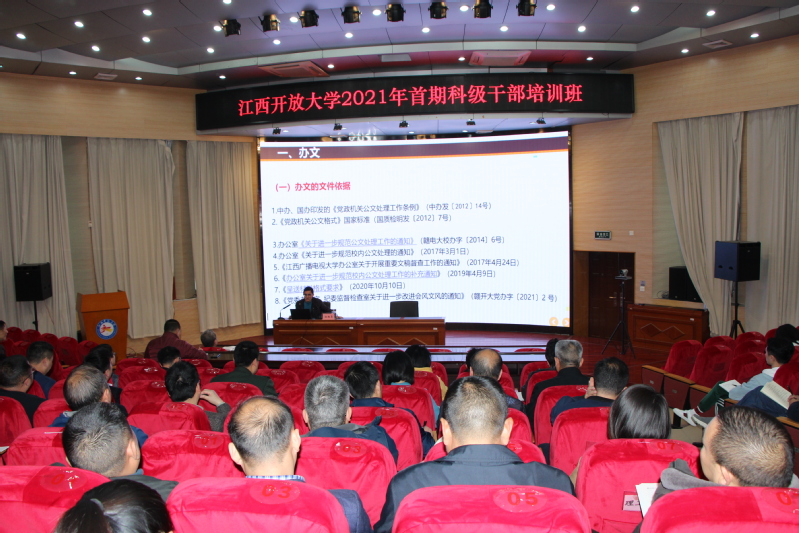 按照培训班培训计划,4月8日下午,办公室副主任汪红亮主讲了“办文 办会 办事 保密”;4月9日下午,纪委监督检查室副主任梅甜甜主讲了“学党史 知敬畏 存戒惧 守底线 清廉担当做表率”。