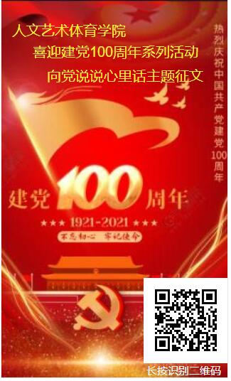 近日,人文艺术体育学院党支部“向党说说心里话”主题征文活动正式启动,借此更好地学习中国共产党团结带领中国人民从站起来、富起来到强起来的奋斗历史,讴歌党的百年丰功伟绩,引导全体师生进一步坚定知党恩、跟党走的信心和决心,开创学院发展新征程。