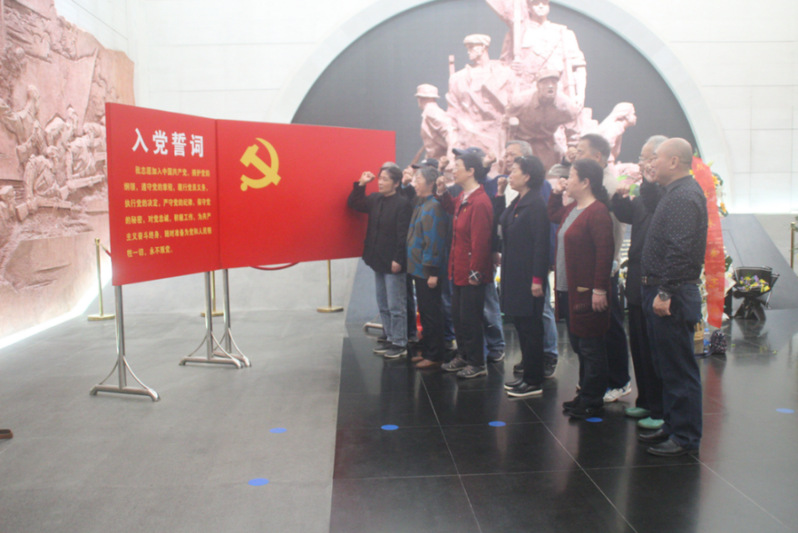 在激昂热血的入党誓词之后,党员们开启了一段穿越历史的旅程。100年来,中国共产党团结带领全国各种人民战胜各种艰难险阻,谱写了中华民族自强不息、实现复兴的奋斗凯歌。从土地革命、抗日战争到解放战争,一本本革命烈士名册、一张张感人的图片、一件件珍贵的展品,党员们伫立凝视,一起接受革命精神洗礼。(文字/图片:李小艳 责任编辑:徐星星)
