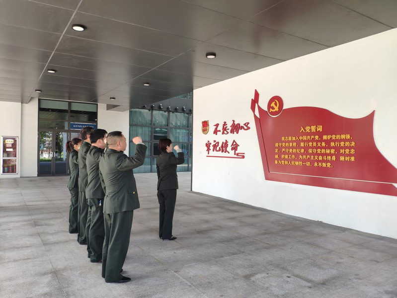 在人武学院纪委书记钟莉娜的带领下,全体纪检干部一起重温入党誓词。一声声铿锵有力地誓词,警醒着大家要不忘初心、牢记使命、薪火相传、奋勇前行。
