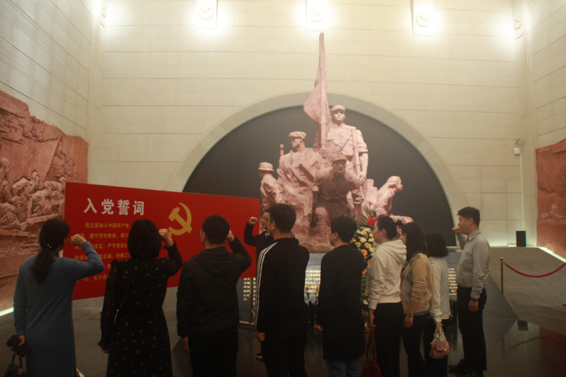 参观学习后,支部全体同志来到纪念堂的中心展厅,庄严地重温了入党誓词。