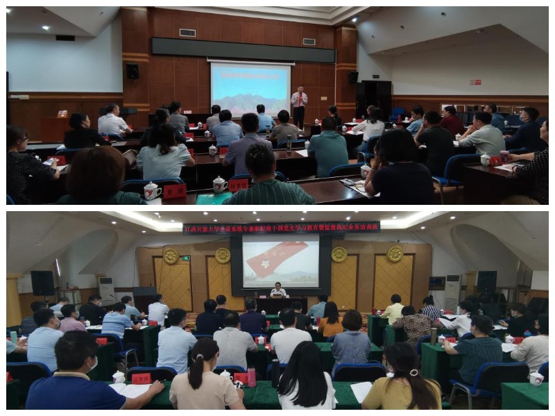 本次培训主题鲜明,内容丰富,既有学习党史、运用党史的生动辅导课,又有不忘初心、牢记使命的党性修养课,还有提高能力、锤炼本领的业务培训课。王水平以“学好百年党史、传承红色基因——做忠诚干净担当的新时代纪检监察干部”为题作党史学习教育宣讲;井冈山大学李忠教授介绍了井冈山根据地从建立、全盛、曲折发展的斗争历程,把全体学员带入了那段炮火纷飞的峥嵘岁月;纪委副书记、纪委综合办公室主任李春湖传达了省纪委省监委向省管高校派出监察专员试点工作动员部署会议精神并对《中华人民共和国监察法》《中国共产党组织处理规定(试行)》等法律法规进行了深入解读;纪委监督检查室副主任梅甜甜以《纪检监察监督工作的实践与思考》为题进行了经验分享。