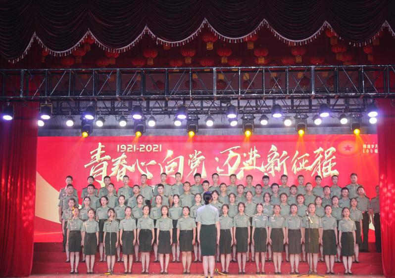 百年征程波澜壮阔,百年初心历久弥新。为庆祝中国共产党成立100周年,23日晚,米兰app入口站官网人民武装学院举行“青春心向党 迈进新征程”喜迎建党100周年文艺汇演。校党委委员、副校长邱东升出席晚会。校党政办主要负责人,人武学院、工程职院党政领导班子,人武学院师生代表近600人参加观看晚会。
