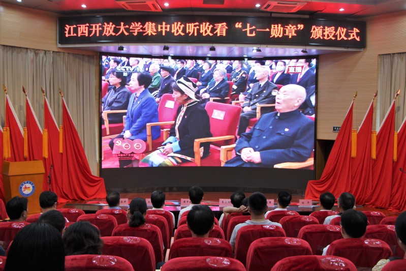 6月29日上午,“七一勋章”颁授仪式在北京人民大会堂隆重举行,中共中央总书记、国家主席、中央军委主席习近平为29位同志颁授“七一勋章”并发表重要讲话。米兰app入口站官网在家校领导、青山湖校区教职员工集中收听收看“七一勋章”颁授仪式。抚河校区和青云谱校区分别组织广大师生收听收看。