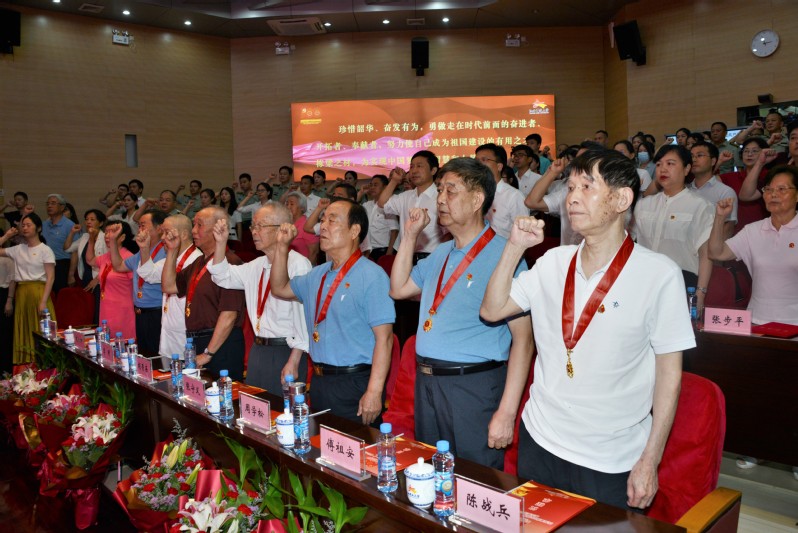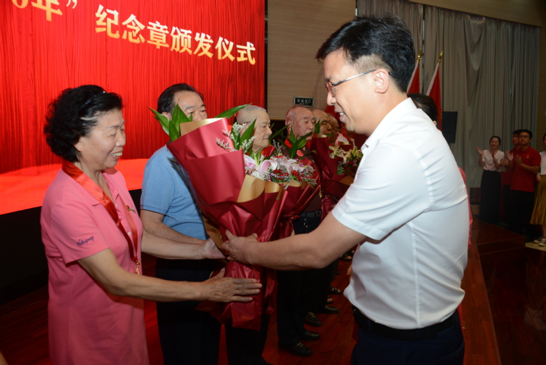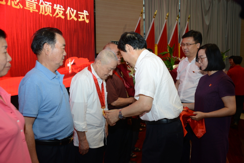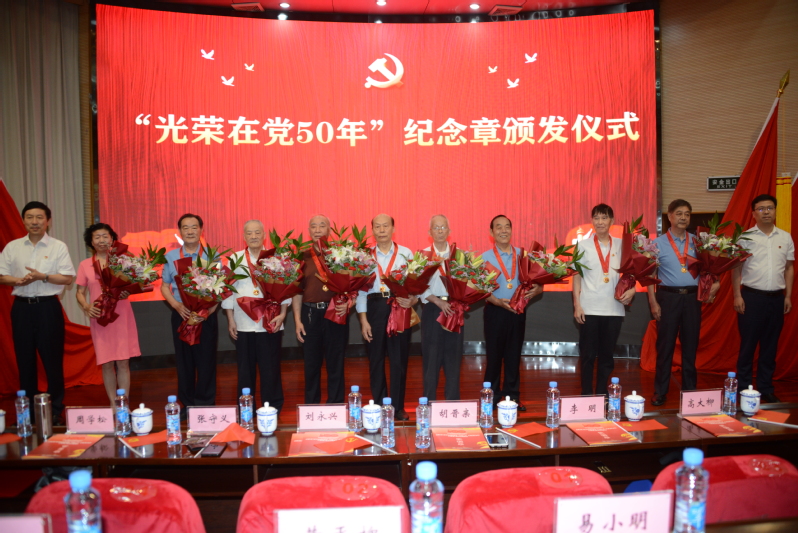 校党委书记易小明为老党员代表颁发“光荣在党50年”纪念章