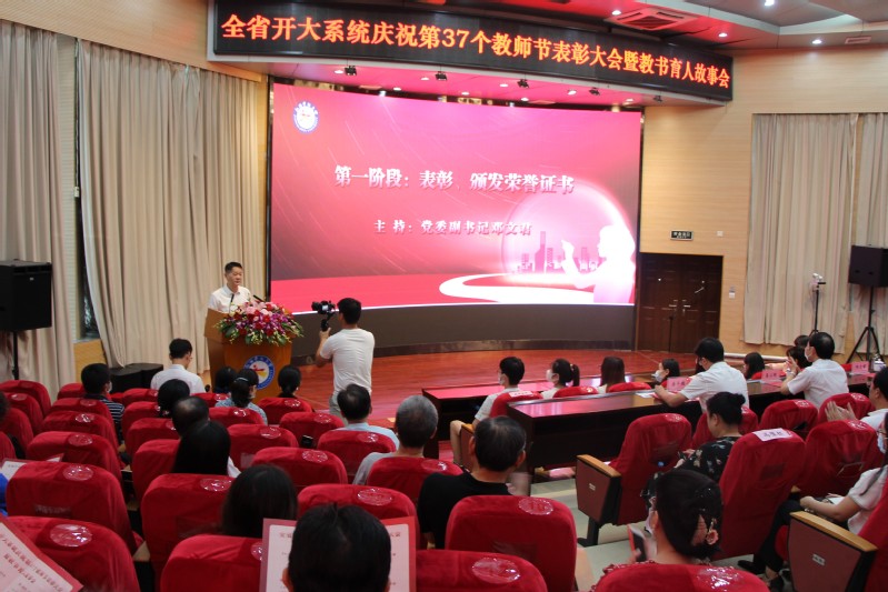 9月10日上午,学校在青山湖校区举办2021年全省开大系统庆祝第37个教师节表彰大会暨教书育人故事会,致敬坚守、礼赞教师,表彰从教30年教师、师德先进个人、师德标兵,2021年全省开大系统“优秀教师年度人物”先进个人等。学校校领导、省开大副处级以上领导干部,部分教师代表齐聚一堂,共同庆祝自己的节日。校党委副书记邓文君主持会议。