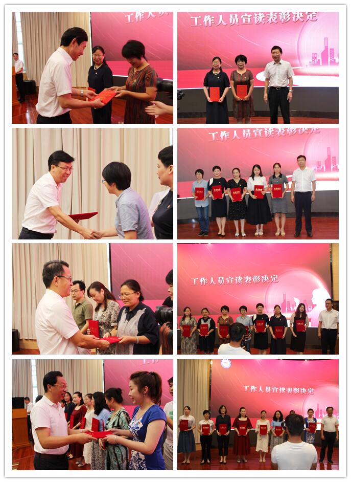 受表彰教师上台接受荣誉证书