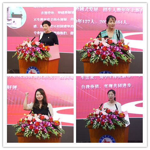 大会举行了新教师入职宣誓仪式。在党委委员、副校长邱东升领誓,党委委员、副校长冯豫红监誓下,新教师代表们面对国旗,庄严宣誓。铿锵誓言在会场回荡,表达出新入职教师忠诚于党的教育事业,牢记为党育人、为国育才的神圣使命与职责。