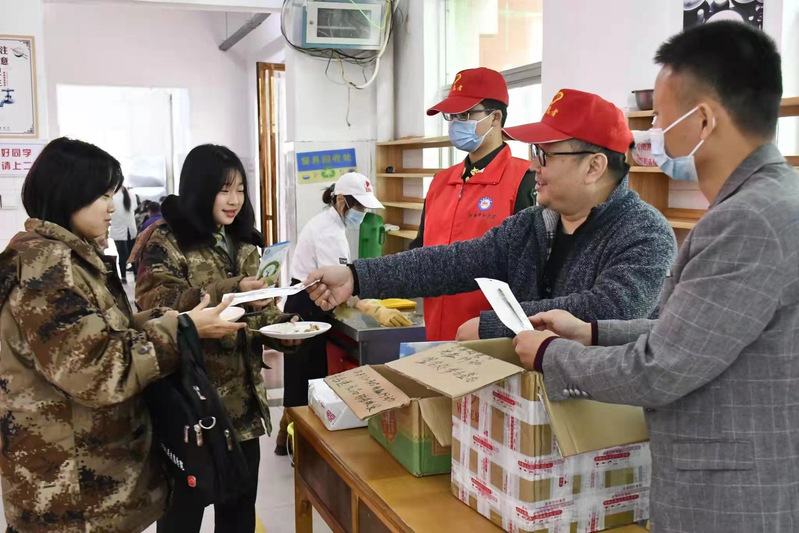 志愿者们向师生宣传节约粮食和垃圾分类的知识