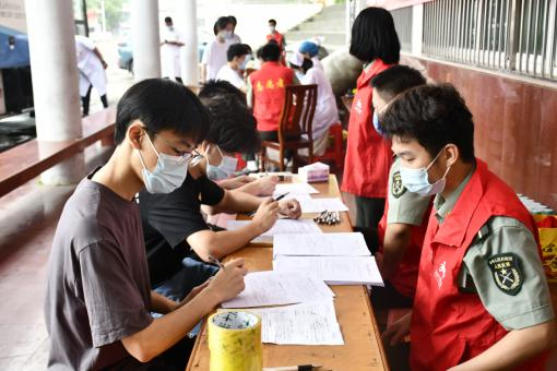 活动现场,前来献血的师生在江西省血液中心工作人员和学校志愿者的指导下,严格落实一米线、全程戴口罩、检查健康码等环节,有序开展填表、测量血压、系统录入、血型检验、采血等献血流程,最大程度保障参加献血师生的自身安全。活动中,不论是献血者还是志愿者,他们都用自己的实际行动,传递着温暖与感动。献血者中,既有多次无偿献血的“老将”,也有初次上阵的“新兵”,他们勇敢地伸出臂膀、捋起衣袖,献出了自己的涓涓热血。一袋袋带着体温的血液,凝聚着所有人的赤诚爱心;一张张特殊意义的献血登记表,彰显着当代青年的责任担当。志愿者们提醒大家遵守现场秩序,密切地关注每位献血同学的身体状况,用一声声叮咛、一句句嘱咐,缓解大家的紧张情绪,守护着参与活动师生的生命健康。他们用热血汇聚力量,用行动诠释担当。