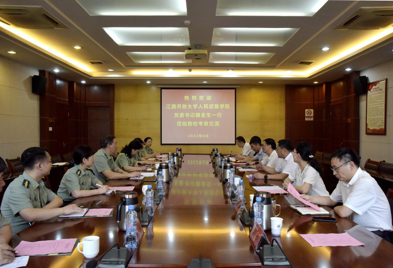 为深入贯彻落实学校打造模范机关(部门)工作推进会精神和校党委书记贺瑞虎考察调研人武学院座谈会精神,落实学校开展教育思想大讨论、组织开展专题调研活动的要求,6月21日上午,人武学院党委书记魏金生一行8人赴豫章师范学院考察学习。豫章师范学院党委书记赵恒伯热情接待了考察组一行,并主持座谈会。豫章师范学院组织部、宣传部等相关部门负责人参加座谈。
