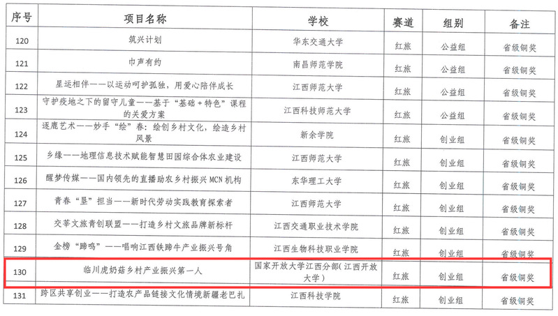 近日,第八届江西省“互联网+”大学生创新创业大赛圆满落下帷幕,米兰app入口站官网在本届大赛中取得了1银1铜的好成绩。我校选送的《南国杉人》项目荣获职教赛道省级银奖,《临川虎奶菇,乡村产业振兴第一人》项目荣获“青年红色筑梦之旅”赛道省级铜奖。