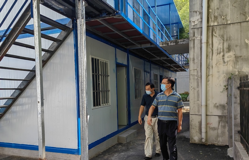 在工程职院,黄平槐仔细检查指导了学院疫情防控落实情况,了解新生入学后适应情况及近期学院寝室改造等建设工程进展,查看了新建隔离室,随后来到学生公寓看望学生并了解暑期寝室改造情况。
