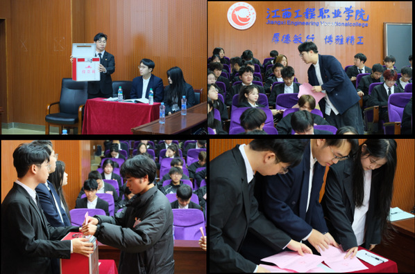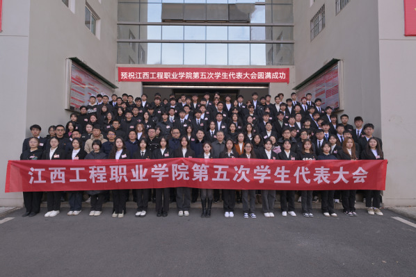 江西旅游商贸职业学院主席团成员张钰铎代表江西旅游商贸职业学院学生会向大会的召开表示祝贺,希望两校持续开展合作,丰富校园文化,增进两校友谊。学校第四届主席团成员高巧巧同学代表第四届委员会做题为《自信自强、守正创新、踔厉奋发、勇毅前行,奋力谱写我校学生会工作发展的新篇章》的工作报告。四个代表团分团讨论审议并通过了学校第四届学生委员会工作报告的决议和第五次学生代表大会提案工作报告,选举付瑞、张业伟、闵文翔、夏瑜芳4位同志为江西工程职业学院第五届主席团成员;付瑞、程龙、张林发、张业伟、刘宇琪、赵宇达、闵文翔、李静蕾、夏瑜芳9位同学为江西工程职业学院第五届学生委员会委员会成员。
