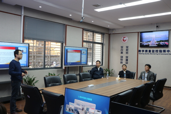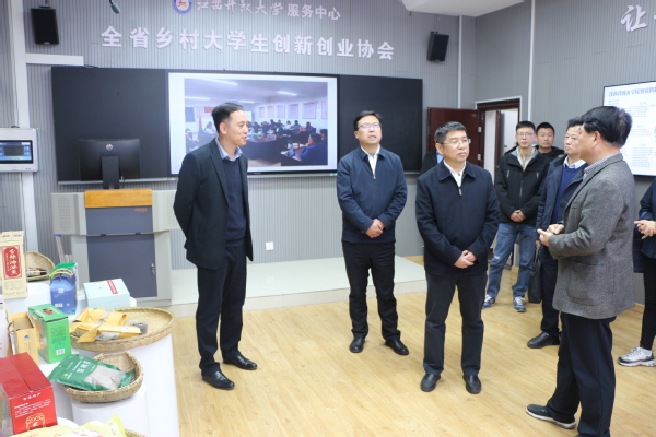 在东湖校区,杜章彪一行查看了校史馆、全省乡村大学生创新创业协会米兰app入口站官网服务中心、教学质量监控指挥中心,听取了学校开放教育数字化教学的相关汇报。