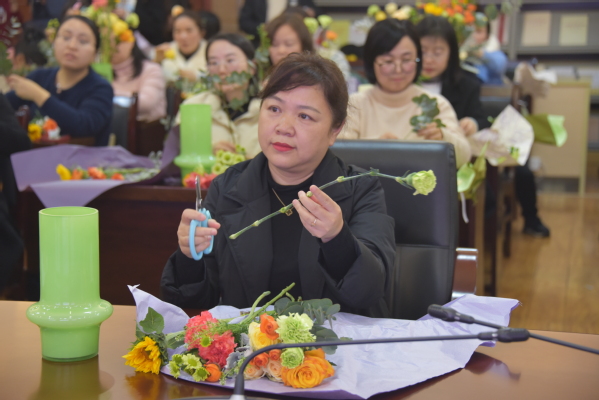 为迎接国际“三八”妇女节,加强我校精神文明建设,活跃校园文化氛围,引导广大女职工关注自身艺术修养、提升文化内涵,3月7日下午,学校举办了“三八”妇女节女职工花艺讲座及DIY活动。校党委委员、副校长冯豫红参加了活动。