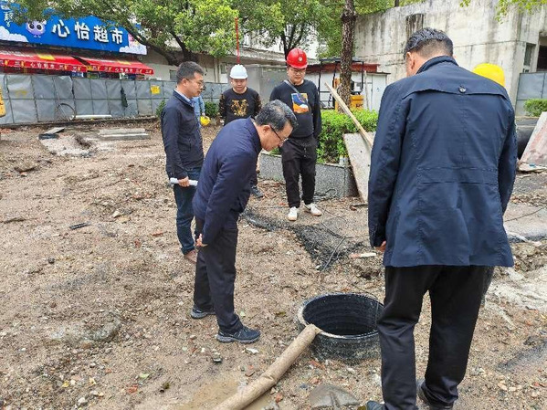 王水平实地察看西湖校区雨污分流改造工程现场,认真听取了校园管理处相关负责人关于改造工程推进情况的汇报,详细了解改造工程施工计划、各排口的排查溯源、存在的难点和质量管控等情况,并提出督导意见。