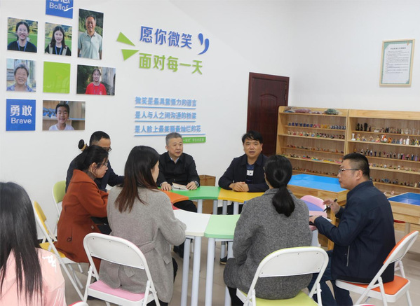 在心理健康咨询室,贺瑞虎一行仔细查看了学生心理健康教育记录,耐心询问关于学生心理健康的具体情况,并展开分析研究,提出工作建议。他指出,心理健康对于学生的发展和成长至关重要,它直接影响着社交能力学业成绩职业规划心理健康教育是学校思想政治工作的重要内容,心理健康教育教师是学校思政教育队伍的重要组成部分。大家走进学生的内心世界,以情育人、以情感人、以情化人、给学生以亲近感、信任感、期望感贺瑞虎强调,要深入了解个体的心理状态和实际需求,落实一人一案一人一策,找准需求并对症下药,通过内容丰富、形式多样的心理辅导活动,营造积极向上、愉快和谐的校园文化氛围,引导学生接纳自我、关心自身,助力学生挖掘自身潜能,积极面对人生。