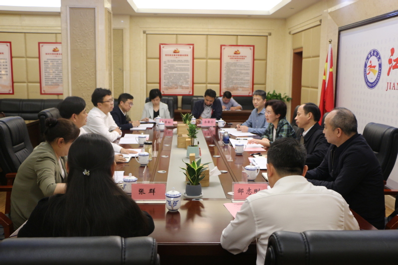 贺瑞虎、黄平槐代表学校党委、行政对陈文华、梁云森一行来校深化交流合作表示欢迎,向新余市长期以来给予江西开放教育的支持帮助表示感谢。贺瑞虎对新余开放大学综合改革提质创优工作、开放教育与老年教育的融合发展给予了高度认可。他指出,希望新余开放大学在市委、市政府的关心和支持下,明确发展目标定位,积极“谋发展”、主动“求突破”,走“错位+差异化”发展之路;充分发挥开放大学“线上+线下”办学优势,积极探索“数字+老年教育”创新发展模式;注重办学质量创优提质,推动人才培养与当地社会经济发展、产业需求紧密结合。