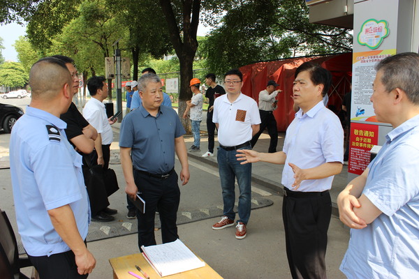 在西湖校区,贺瑞虎、黄平槐一行详细检查了门卫值班、防暴器材配备、监控设备运行等重点情况,并与校园管理处主要负责人、各科室负责人展开现场座谈,听取了处室负责人关于校园安全稳定情况汇报和工作计划,询问了工作中存在的问题和困难。