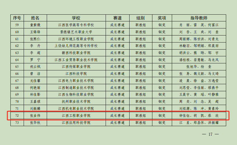 近日,江西省教育厅公布了首届江西省大学生职业规划大赛获奖名单。我校学生张业伟凭借优秀的职业规划和出色的表达能力,经过初赛、复赛、决赛的激烈角逐,在教师钟佳钰、胡凯、蔡欣的指导下荣获成长赛道职教组铜奖。