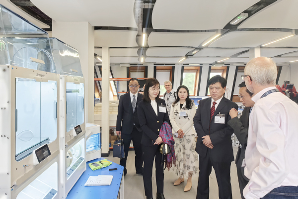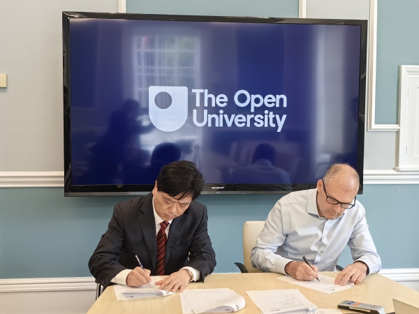 在英国开放大学访问期间,贺瑞虎与该校副校长Kevin Shakesheff教授进行了深入交流。重点围绕开放教育教学质量提升、教学支持服务、师资队伍建设、课程设计以及教师赴英培训等事宜进行充分商讨,双方就进一步深化交流合作、推动两校关系迈上新台阶达成共识,贺瑞虎代表学校签署了《米兰app入口站官网与英国开放大学合作谅解备忘录》。交流结束后,学校代表团受邀参观了该校远程教育实训中心OPENSTEAM实验室。