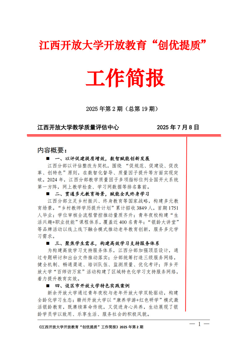 米兰app入口站官网开放教育“创优提质”工作简报2025年第2期(总第19期)
